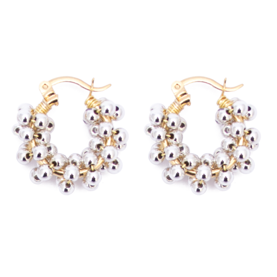 Arracada bordada con perlas japonesas plateadas