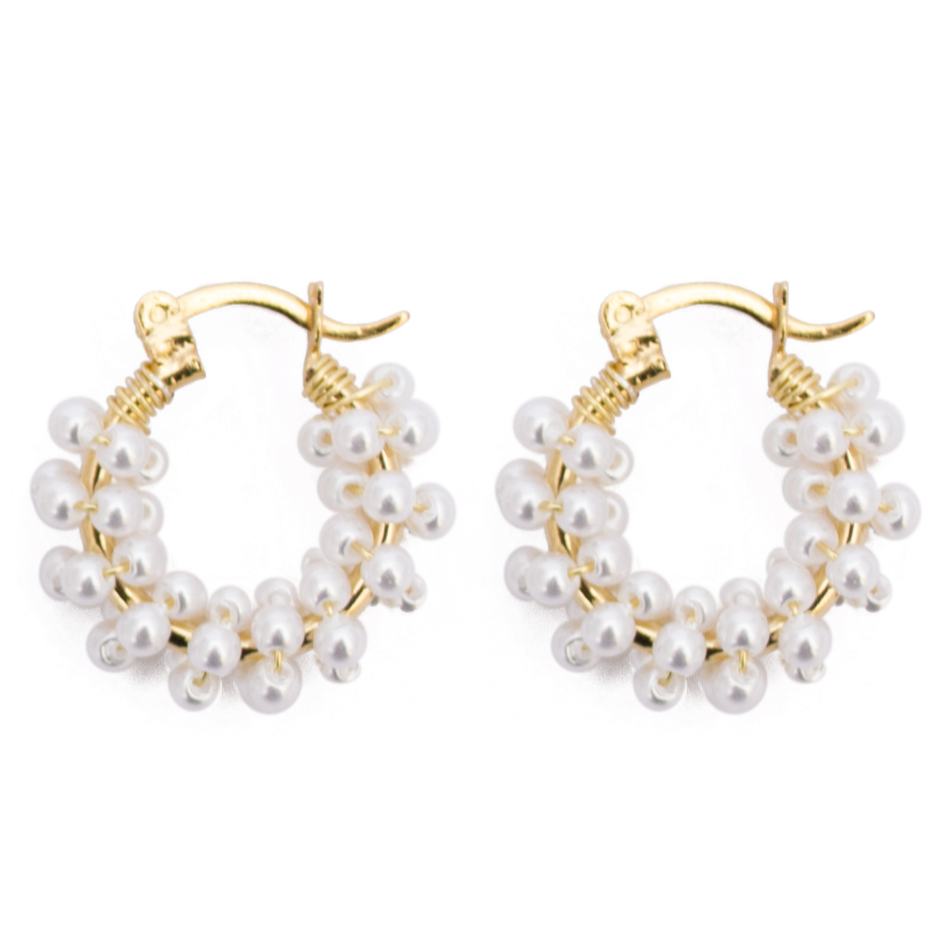 Arracada bordada con perlas japonesas blancas